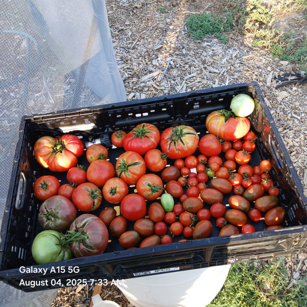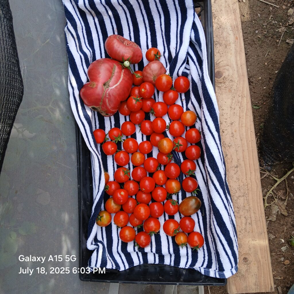 New Trellising system for Tomatoes New trellising system for tomatoes this year. Using t-bars with attached hoops (courtesy of an NRCS grant) and cross wires to tie up too instead of wood. Results: